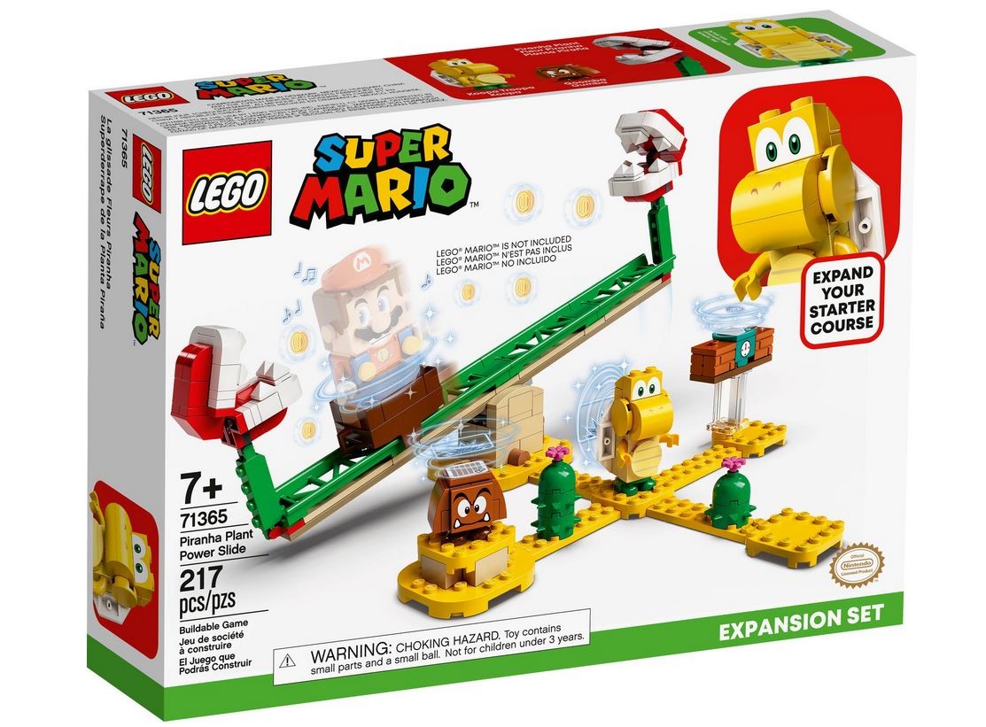 - Rozbudowanie zestawu LEGO Super Mario Przygody z Mario poziom startowy (71360) o świetny zestaw dodatkowy Megazjeżdżalnia Piranha Plant (71365) pozwoli dzieciom ćwiczyć poruszanie się po zdradliwej huśtawce i urządzać konkursy z udziałem przyjaciół.