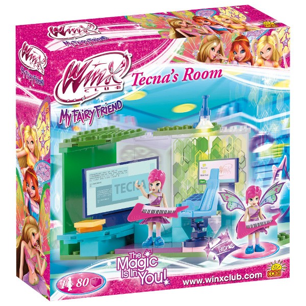 Tecna jest prawdziwą fanką nowinek technologicznych. W jej pokoju możemy znaleźć TV, komputer, keyboard, ale również tradycyjne książki. W zestawie znajdziesz 80 klocków Cobi, 1 figurkę Tecny, wyposażenie pokoju, mebelki i lampkę, instrukcję.