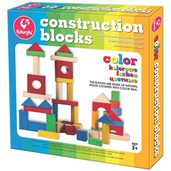 Klocki drewniane konstrukcyjne, kolorowe