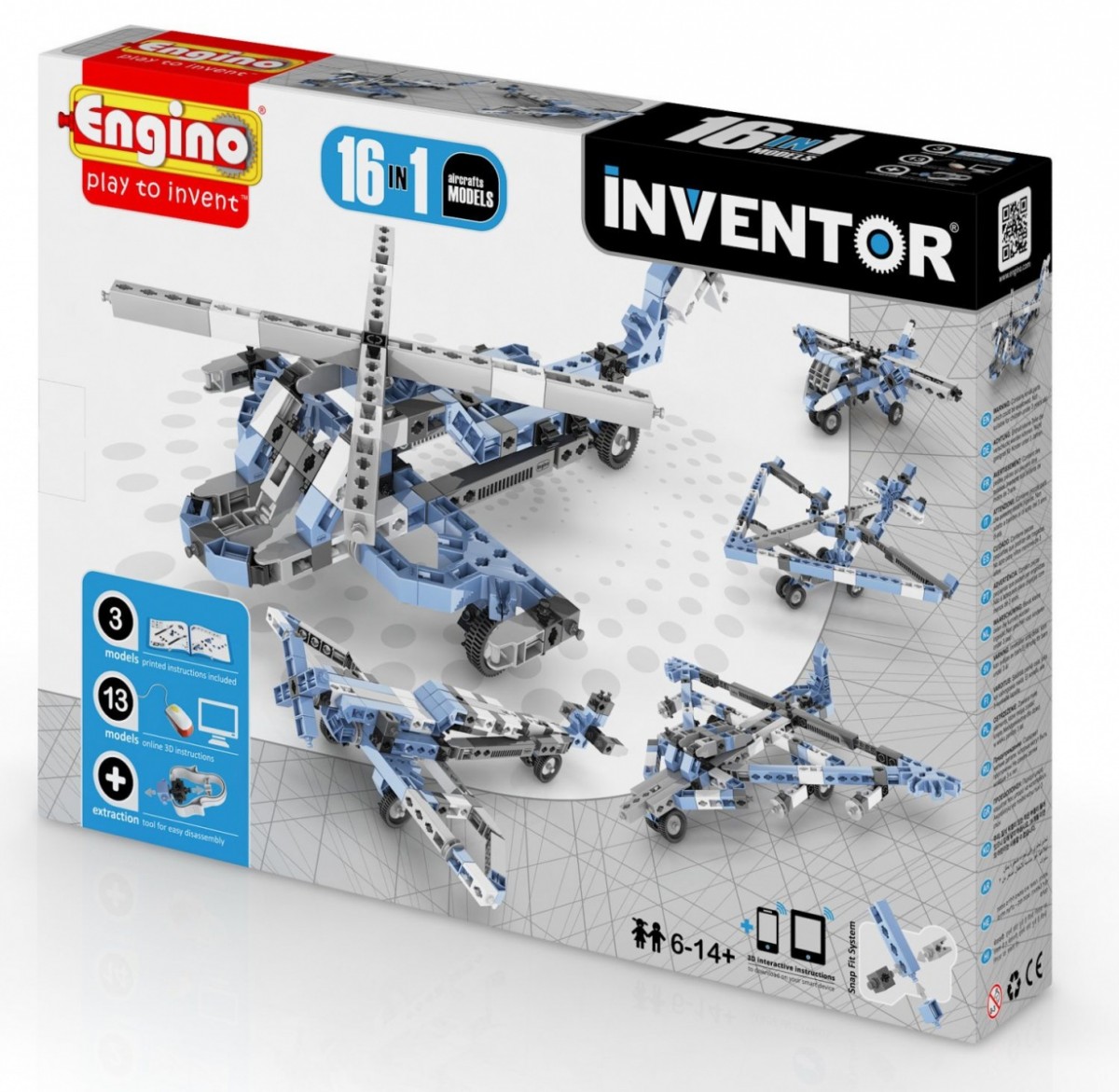 - Wszystkie modele można złożyć pobierając bezpłatne instrukcje internetowe, dostępne na stronie internetowej Engino. Wszystkie modele są dostępne jako interaktywne instrukcje 3D wyświetlane z komputera lub smartfona i tabletu za pośrednictwem aplikacji ENGINO 3D Viewer (kidCAD), do pobrania za darmo w systemach operacyjnych Android, Apple (iOs) i Windows Mobile.