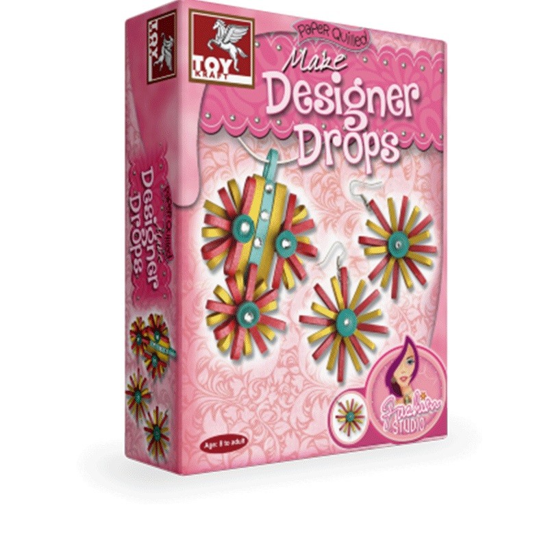 Zestaw do samodzielnego wykonania kolczyków i wisiorka metodą Quillling, polegającą na zawijaniu wąskich pasków papieru w sprężynę i formowaniu ich poprzez zgniatanie.