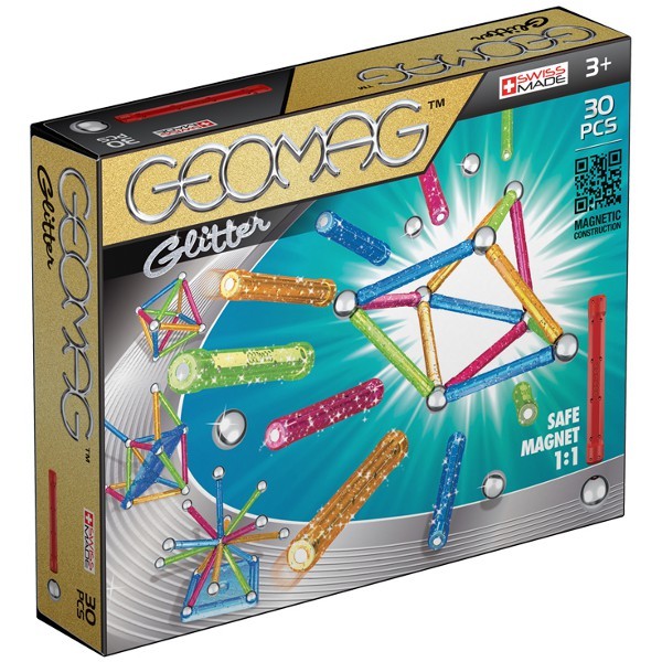Geomag to oryginalne markowe produkty znane na całym świecie, składające się magnetycznych patyczków i metalowych kulek. Wszystkie produkty Geomag są produkowane w Szwajcarii, zgodnie z najwyższymi standardami jakości. Klocki pobudzają ciekawość, kreatywność i są doskonałą rozwijającą zabawką dla dzieci. Z klocków zawsze można tworzyć nowe konstrukcję. Nowa seria Geomag Glitter posiada połyskujące patyczki i panele. Seria jest odpowiednia dla dzieci w wieku 3