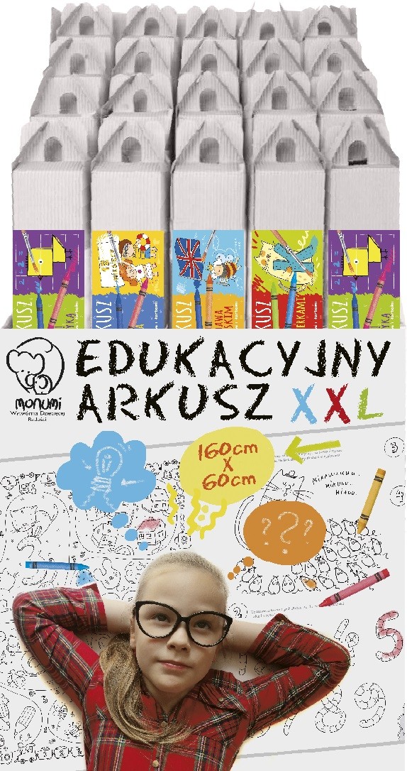 Arkusze edukacyjne XXL to wielkoformatowe plakaty do kolorowania oraz nauki przez zabawę. Wykonane z grubego, białego kartonu. Profesjonalna grafika, motywy pomagające zapamiętać istotne informacje z danej kategorii. Wyraźny druk w kolorze czarnym. Rolowane, nie składane bez zagnieceń. W tekturowej tubie chroniącej przed zniszczeniem.