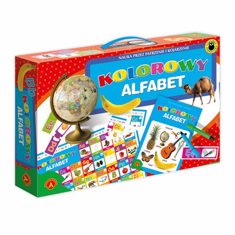 "Kolorowy alfabet" to zestaw edukacyjny do nauki liter alfabetu i czytania.