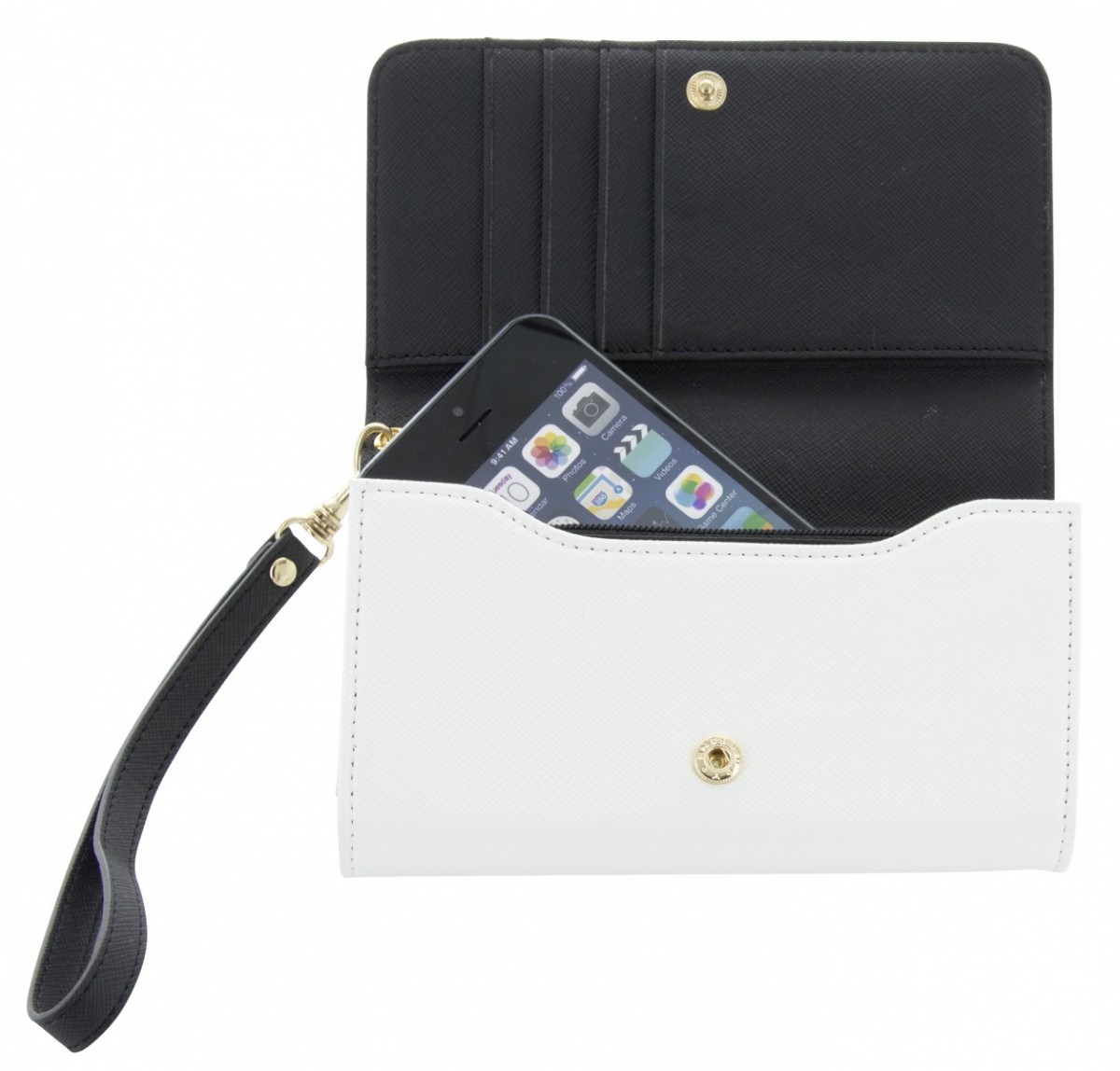 Holdit kopertówka biała/czarna to atrakcyjna torebka z miejscem na karty kredytowe, banknoty oraz smartfona.