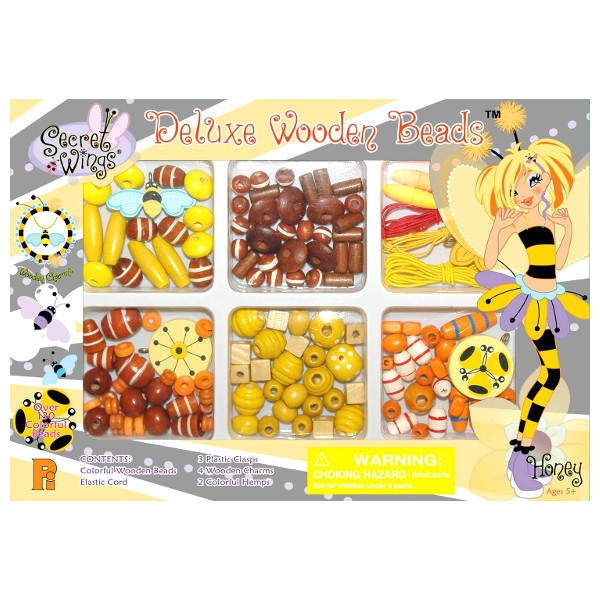 Komplet Deluxe Wooden Beads zawiera ponad 120 koralików, a także elementy do łączenia bransoletek i naszyjników i kolorowe sznurki. Tak duża ilość elementów pozwala na wykorzystanie zestawu do pracy w większej grupie! Zestawy Secret Wings to świetny pomysł na urozmaicenie przyjęcia – dzieciaki mogą wspólnie wykonać biżuterię, a potem zabrać ze sobą w ramach drobnego upominku!