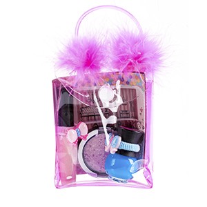 Przejrzystą, pomponiastą Kosmetyczkę TuTu wypełniają pięknie kolorowe, pełne uroku i blasku kosmetyki dla Dziewczynek w wieku 3+. Hipoalergiczny Lakier na bazie wody ściągamy jak naklejkę, metodą peel-off, rozgwieżdzony Błyszczyk smakuje jak truskawka, otwartym Cieniem-pieguskiem ciągnionym po pasemku włosów tworzymy super-kolorowy, łatwo zmywalny efekt. Niektórym kosmetykom towarzyszą ozdobne gumki do włosów.