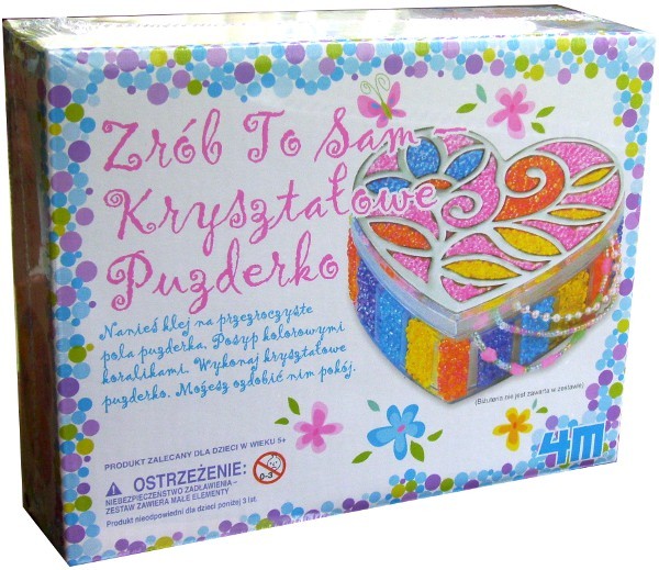 Puzderko kryształowe: potrafi odjąć mowę!Zestaw do samodzielnego wykonania kryształowego puzderka. Nanieś klej na przezroczyste pola i posyp kolorowymi koralikami. Sama zobaczysz jaka to frajda! Niech Twoje puzderko mieni się w oczach i zaskakuje innych. Kryształowe cudeńko będzie pięknie wyglądało, a Ty schowasz w nie co tylko zechcesz.