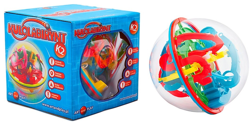 KULOLABIRYNT to labirynt zamknięty w plastikowej kuli. Wewnątrz znajduje się mała metalowa kulka, którą należy doprowadzić do celu radząc sobie z różnego rodzaju przeszkodami takimi jak zapadnie i przepaście. Do wyboru są różne ponumerowane drogi prowadzenia kulki. To zabawka zręcznościowa zarówno dla dzieci, jak i dorosłych. Ćwiczy koncentrację, cierpliwość oraz zdolności manualne. Pozwala kontrolować równowagę, poprawia intelekt, uczy cierpliwości, pokazuje jak zwyciężać.