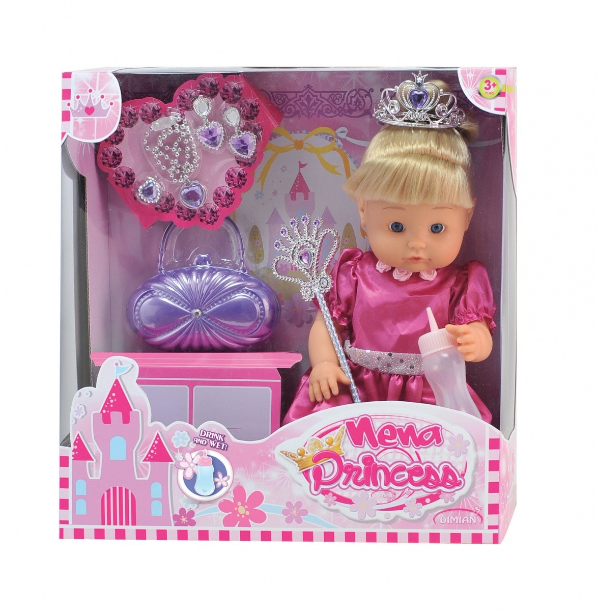 Lalka Nena Księżniczka wygląda jak prawdziwa księżniczka z bajki. To idealna lalka dla każdej małej dziewczynki marzącej o księżniczkach, sukniach i balach. Nena ubrana jest w różową, połyskującą sukienkę, ma elegancko upięte włosy i ozdobne akcesoria. Lala pije i sika.