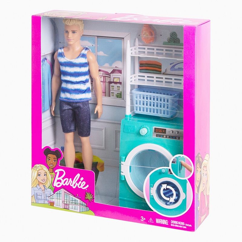 Ken jest już gotowy do domowych obowiązków dzięki tym wyjątkowym zestawom do zabawy Barbie. Są one wyposażone w mebelek do wystroju pokoju dla lalek i akcesoria, które pozwalają na realistyczne odgrywanie scenek z życia codziennego. Wybierz zestaw Ken do zabawy w golenie lub pranie. Każdy zestaw zawiera lalkę Kena, mebelek i mniejsze akcesoria, a także specjalną funkcję uatrakcyjniającą zabawę. Ken w zestawie do golenia ma brodę zmieniającą kolor. Wykorzystaj ręczniczek i zimną wodę, aby zobaczyć jego zarost, a następnie użyj wykończonej gąbką maszynki do golenia i ciepłej wody, aby ją zgolić powtarzaj bez końca! Zestaw z Kenem w pralni zamienia codzienne zadania w zabawę zawiera pralkę/suszarkę z przełącznikiem do wybierania cyklu i tarczą, którą dzieci mogą obracać, aby wnętrze pralki również się kręciło! Lalki sprzedawane oddzielnie. Lalki nie stoją samodzielnie.