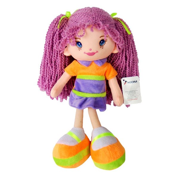 Lalka ma długie, gęste i mięciutkie włosy ozdobione kokardkami. Ma haftowane elementy twarzy i ubrana jest w śliczną, kolorową sukienkę.