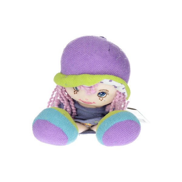 Mięciutka Lalka Maja w kolorze fioletowym.