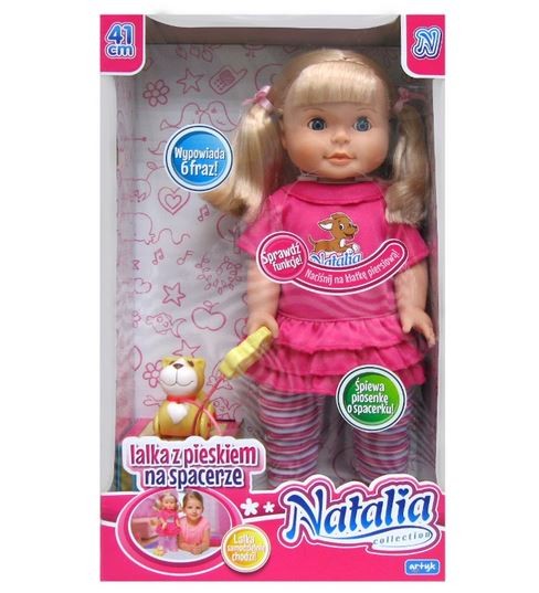 Lalka Natalia z pieskiem na spacerze