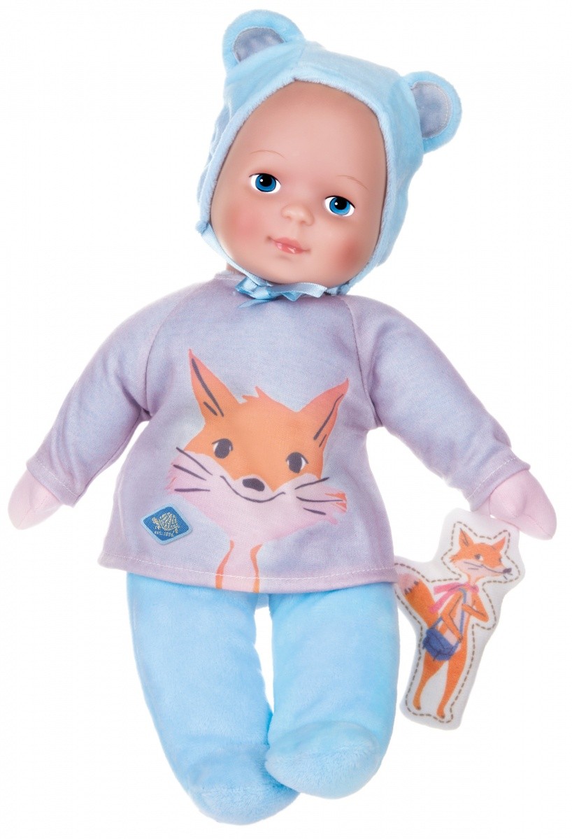 W komplecie welurowy lisek - przyjaciel. Tułów, ramiona i nóżki obszyto jasnoniebieskim, welurowym materiałem.