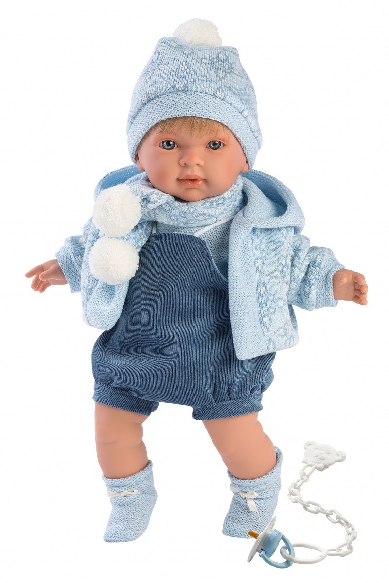 Lalka płacząca Miquel chłopiec niebieska bluza 42149 42 cm