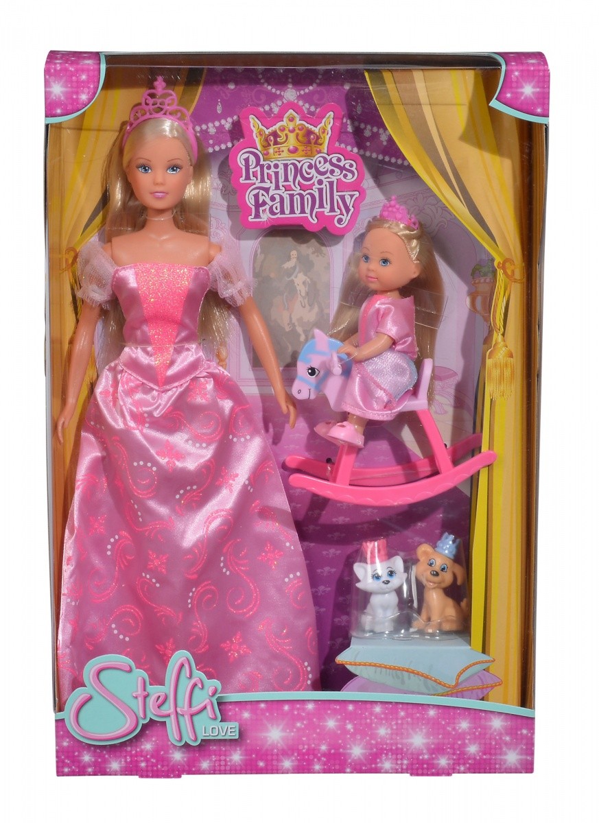Strona główna Lalki markowe Lalki Steffi i Evi Królowa z królewna Cena Netto: 44,18 zł. error_outline Produkt chwilowo niedostępny. Opis Lalki Steffi i Evi Królowa z królewnąLalki Steffi i Evi w królewskich sukniach i tiarach.Towarzyszą im piesek i kotek, każdy w swojej koronie.Królewna Evi siedzi na koniku bujanym.