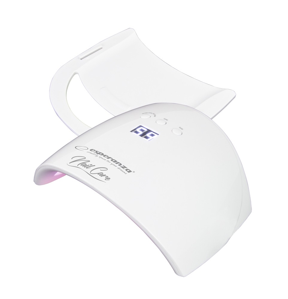Dzięki profesjonalnej lampie UV ESPERANZA TOPAZ możesz zapomnieć o częstych wizytach w salonach kosmetycznych i drogich zabiegach manicure. Za jej pomocą zrobisz to szybciej, taniej i dokładnie tak jak chcesz. Równomiernie utwardza wszystkie lakiery hybrydowe, akrylowe, żelowe oraz inne preparaty do paznokci utwardzane światłem UV. Lampa doskonale sprawdzi się za równo w samodzielnej stylizacji manicure i pedicure jak i w profesjonalnych salonach piękności. Wyposażona jest w 23 wydajne diody LED emitujące białe światło o łącznej mocy 48W i podwójnym zakresie fal 365nm i 405nm. Posiada sensor ruchu oraz wyświetlacz z czasem utwardzania, które znacznie ułatwiają pracę. Twoje paznokcie będą piękne i lśniące przez wiele dni a nawet tygodni.