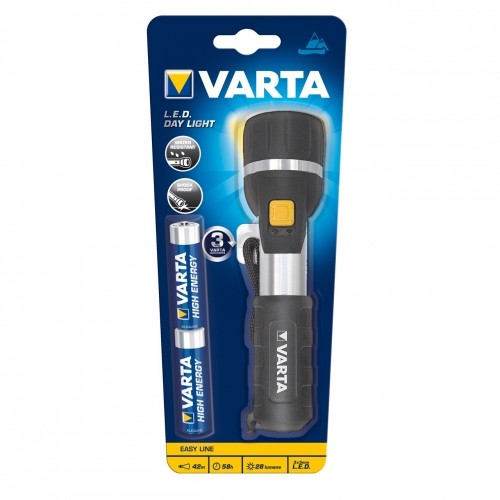 Varta Latarka LED DAY LIGHT - Do codziennego użytku. 3 diody 5mm podwyższające jakość świecenia. Latarka z chropowatym uchwytem wykonanym z aluminium, tworzywa ABS oraz gumy. Obudowa odporna na uderzenia, latarka idealna do użytkowania podczas aktywnego spędzania czasu na wolnym powietrzu. Wygodna opaska na rękę.