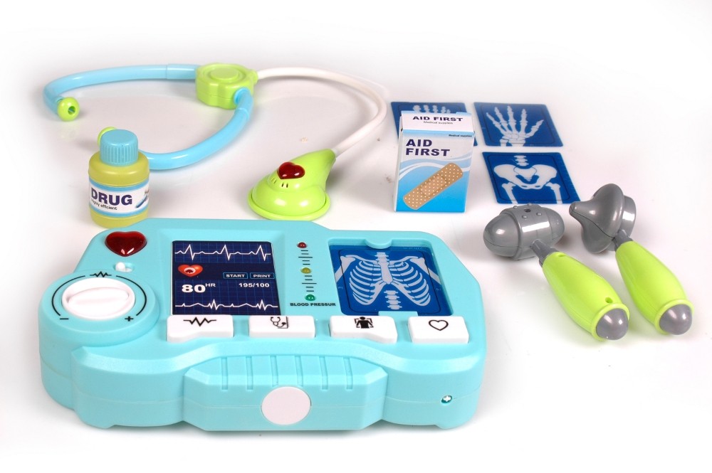 Zabawka zaskoczy każdego ilością funkcji tj.: pomiar ciśnienia krwi, dźwięk bicia serca, rentgen oraz ekran monitorujący funkcje życiowe. Dodatkowo w każdym zestawie podświetlany stetoskop, młoteczki i atrapa lekarstw.
