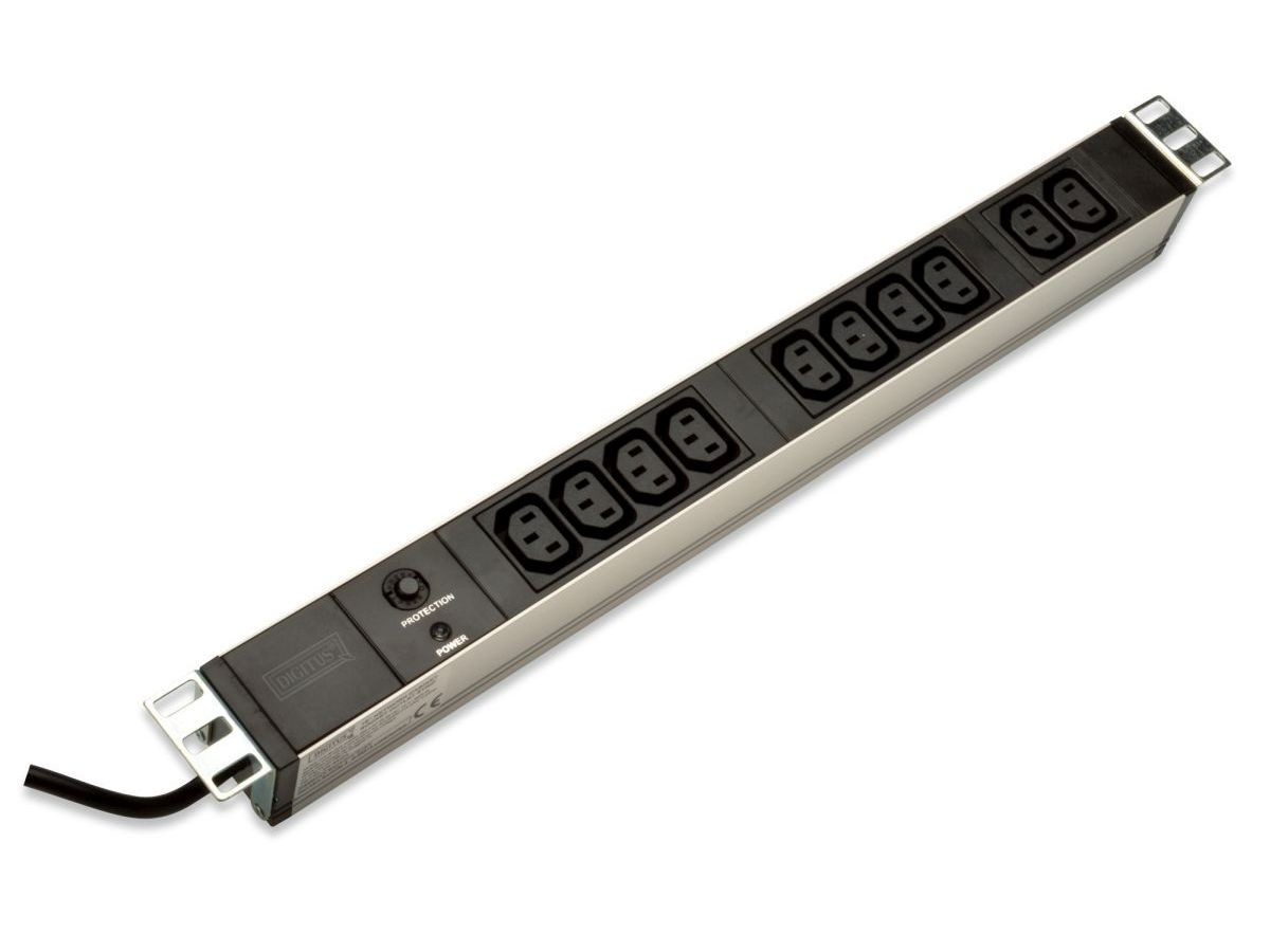 Listwa zasilająca PDU 19" RACK 10xC13, kabel 2m z wtyk C14, zab. przeciążeniowe, aluminiowa