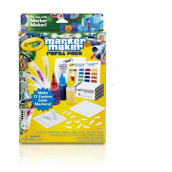 Jeśli jesteś szczęśliwym posiadaczem Marker Maker’a, z tym zestawem zabawa w tworzenie własnych flamastrów staje się nieskończona! Znajdziesz w nim buteleczki z atramentem w trzech podstawowych kolorach. Użyj instrukcji mieszania i twórz więcej barw!