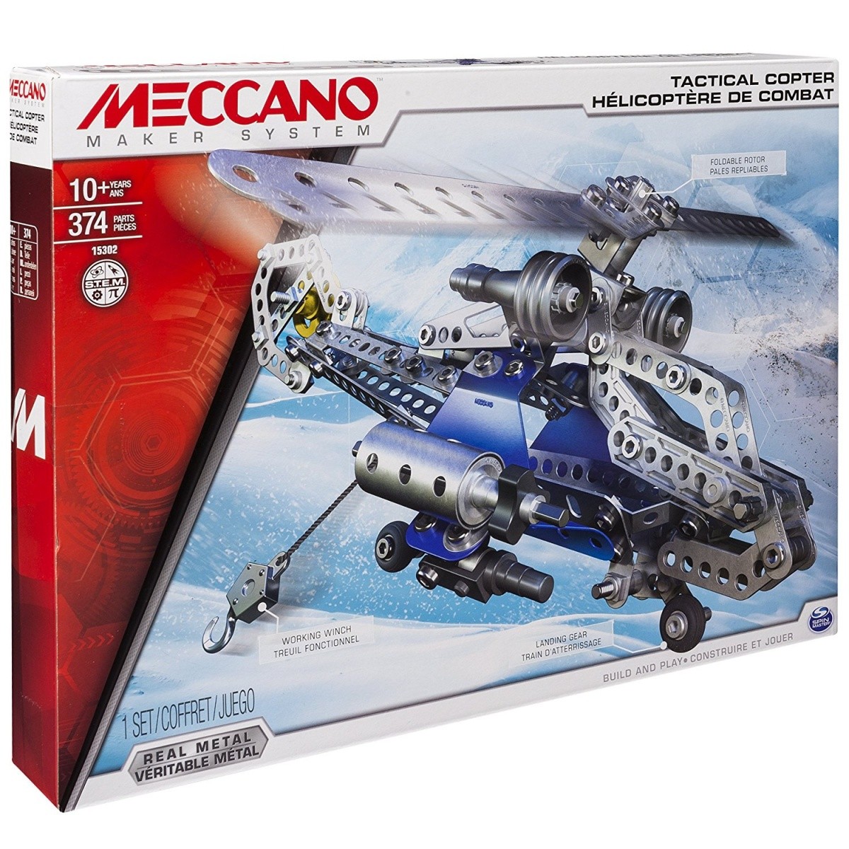 Wykonuj niesamowite manewry lotnicze z pomocą wysuwanego podwozia, składanych śmigieł i wyciągarki szybowcowej. Misja wykonana? Przekształć swój helikopter w pełni funkcjonalny szybowiec. Z wykorzystaniem wyobraźni stwórz własny rewolucyjny pojazd! Zestaw Meccano Helikopter zawiera 374 elementy, 2 prawdziwe narzędzia oraz instrukcję krok po kroku. Odkryj świat mechanicznych cudów i przygotuj się do lotu z estawem Helikopter Meccano!