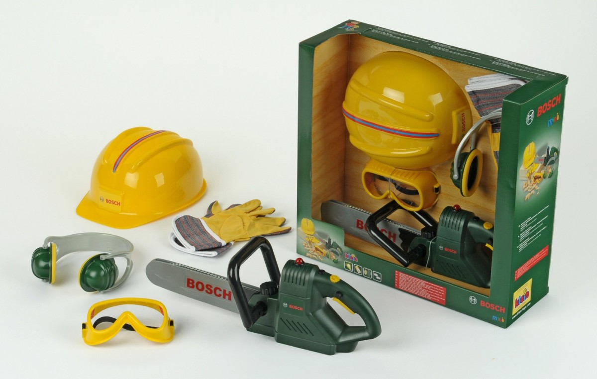 Doskonałe uzupełnienie kącika małego majsterkowicza, niemieckiego producenta Klein, na licencji wszystkim dobrze znanej firmy BOSCH. Każdy maluch wie, że do pracy należy się odpowiednio przygotować. Podstawą jest odpowiednio dopasowany kask z regulacją wielkości oraz grube rękawice. Dodatkowo słuchawki zabezpieczające przed nadmiernym hałasem maszyn oraz okulary chroniące oczy przed pyłem. zestaw Bosch Mini zawiera wszystkie niezbędne elementy do bezpiecznej pracy. Prawdziwym hitem jest piła łańcuchowa, wyglądająca jak prawdziwa. Do złudzenia przypominają akcesoria używane przy prawdziwych pracach remontowych czy stolarskich. Fantastyczny pomysł na prezent dzięki stylowemu opakowaniu z licencją firmy BOSCH. zestaw Bosch firmy Klein da Waszemu dziecku wiele godzin niezapomnianej zabawy.