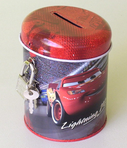 Idealny pomysł na prezent, który uczy oszczędności i sprawia, że pieniądze są bezpieczne. Skarbonka jest zdobiona motywami bohaterów z bajki Cars.
