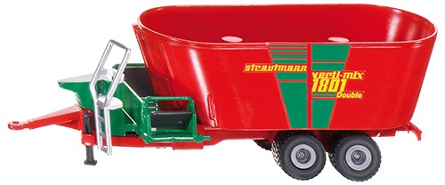 Model posiada metalową ramę, plastikowy pojemnik na paszę, obrotowy mikser oraz regulowaną w pionie podpórkę dyszla.