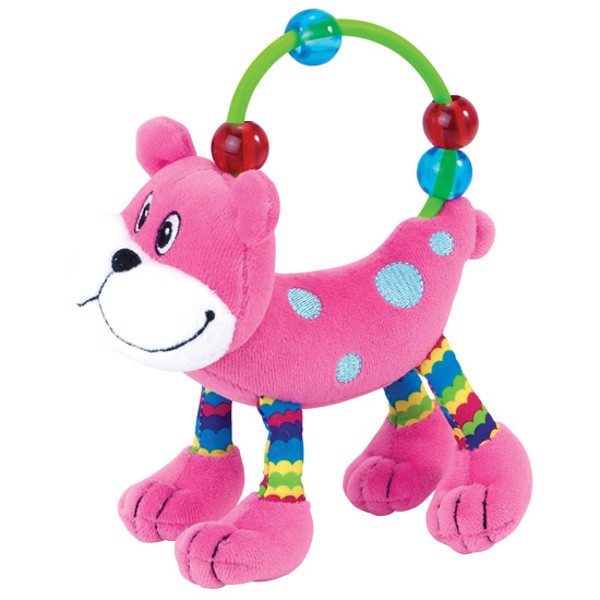 Pluszowa zawieszka poprzez dostarczenie niezbędnych bodźców rozwija: wzrok, słuch oraz dotyk. Wykonana została z kilku materiałów o odmiennych strukturach przez co dziecko dodatkowo zostaje zachęcone do zabawy. Niewątpliwymi zaletami pluszaka są: jego przyjazny wygląd oraz jakość wykonania. Zabawka posiada wygodny uchwyt dostosowany do małych rączek dziecka, na którym znajdują się kolorowe koraliki.