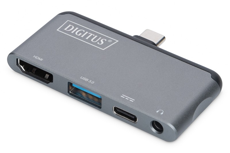 Mobilna stacja dokująca firmy DIGITUS rozszerza np. iPada Pro 2018, MacBooka, Surface Go, a także dowolne urządzenia USB-C (DP Alt-Mode Support) o 4 dodatkowe interfejsy. Korzystaj z zawartości tabletu na dużym telewizorze, monitorze lub rzutniku. Przenoś lub rozszerzaj swój pulpit za pomocą interfejsu 4K HDMI stacji dokującej. Tablet można naładować do 100 W (20 V / 5 A) podczas pracy poprzez dodatkowe gniazdo USB-C umożliwia to funkcja Power Delivery 3.0. Ponadto wbudowany został interfejs USB 3.0 o przepustowości transmisji danych do 5 Gbps, do którego można podłączyć inne urządzenia peryferyjne, takie jak zewnętrzne dyski twarde, pamięci USB i wstecznie kompatybilne urządzenia USB. Ponadto w stacji dokującej znajduje się złącze audio stereo, które można wykorzystać do podłączenia słuchawek lub zestawu słuchawkowego. Mobilna stacja dokująca może być dokowana bezpośrednio w gnieździe USB-C tabletu w celu zaoszczędzenia miejsca. Dzięki swoim kompaktowym wymiarom może być łatwo przechowywana w każdej kieszeni kurtki. Rozszerzaj swoje interfejsy w dowolnym momencie, korzystając z mobilnej stacji dokującej DIGITUS zaprojektowanej specjalnie dla tabletów.
