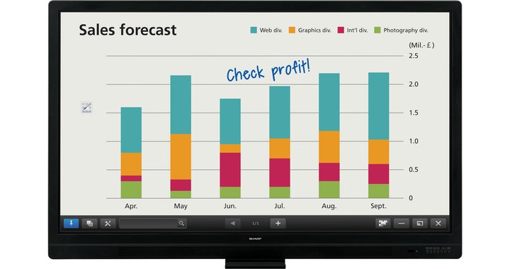W pełni funkcjonalne i wydajne oprogramowanie pióra dotykowego Sharp Pen Software stwarza nowe możliwości do wymiany doświadczeń i pomysłu oraz wspólnego podejmowania decyzji. Łatwy w obsłudze przycisk zatrzymywania obrazu pozwala prowadzącemu prezentację lub nauczycielowi zachować pełną kontrolę nad przebiegiem pokazu - również podczas wyszukiwania istotnych informacji w podłączonym urządzeniu.