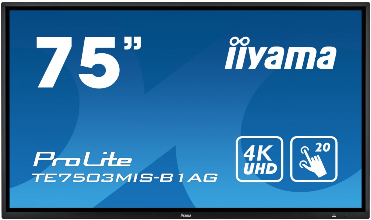 iiyama TE7503MIS-B1AG to panel stworzony z myślą o edukacji I biznesie. Użytkownicy mają do swojej dyspozycji 20 punktów dotykowych i zintegrowane oprogramowanie iiWare 8.0 (Android OS) obejmujące: aplikację Note umożliwiającą wprowadzanie notatek na plikach otworzonych bezpośrednio z nośnika USB podłączonego do ekranu lub wewnętrznej pamięci (32GB) samego wyświetlacza, przeglądarkę sieci WWW, system zarządzania plikami, aplikację do obsługi dostępu do dysku w chmurze, pakiet WPS Office i aplikację ScreenSharePro. Panel umożliwia również odtwarzanie prezentacji, plików wideo, zdjęć, slajdów, plików tekstowych praktycznie w każdym formacie.
