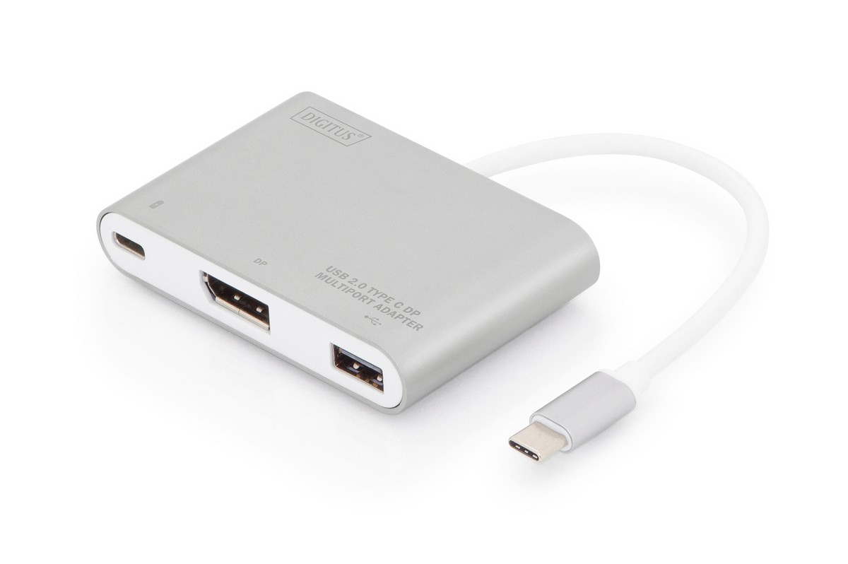 Multi Adapter DisplayPort 4K 30Hz UHD, USB Typ C Power Delivery, USB A 2.0 na USB Typ C, aluminiowy