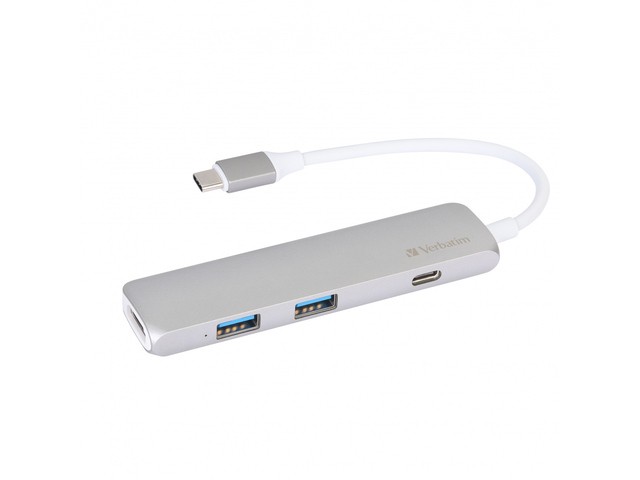 Koncentrator Verbatim USB-C z wejściem HDMI jest idealnym dodatkiem do najnowszych modeli laptopów i MacBooków posiadających ograniczoną liczbę wejść USB. Pojedynczy port USB-C można zamienić na dwa wejścia USB 3.0, wejście USB-C do ładowania oraz port HDMI. Dzięki temu można łatwo podłączyć do komputera monitor 4K, mysz na USB i klawiaturę, a oprócz tego, przez port USB-C, podładować jeszcze inne urządzenie. Niewielki i kompaktowy koncentrator z wbudowanym przewodem USB-C jest doskonałym towarzyszem podróży.