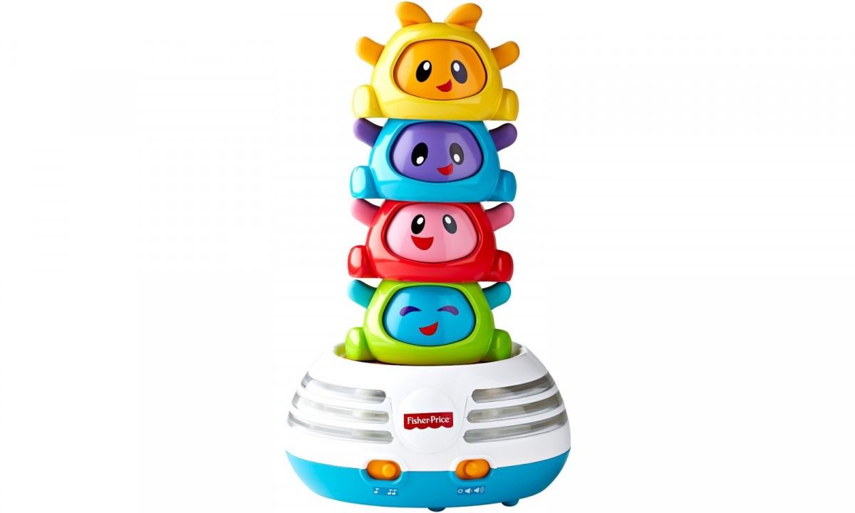 Twój maluch z przyjemnością ułoży na sobie tych słodkich przyjaciół BeBo, by usłyszeć wesołe melodie i uruchomić światełka w podstawie piramidki. Zacznij od trybu „Koncert”. Maluch naciska na podstawę piramidki którymkolwiek z muzycznych przyjaciół, za co nagradzany jest światełkami i utworami instrumentalnymi. W trybie „Muzykowanie” dołożenie i dociśnięcie każdego kolejnego muzycznego przyjaciela powoduje aktywowanie dodatkowych dźwięków. Czterej muzyczni przyjaciele to jednocześnie grzechotki! Przenieś muzyczną zabawę na wyższy poziom z Muzyczną piramidką Fisher-Price. Zestaw zawiera podświetlaną podstawę piramidki z przełącznikiem głośności oraz 4 muzycznych przyjaciół do układania jeden na drugim.