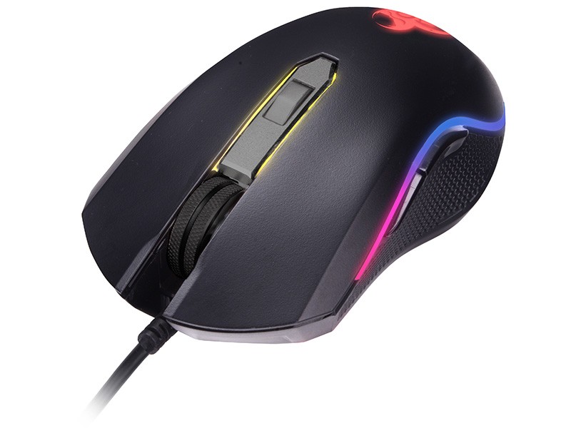 Bardzo dużą wygodę modelu zapewnia konstrukcja z gumowanego plastiku oraz metalowy scroll. Intuicyjne rozmieszczenie praktycznych przycisków sprawia, że w mgnieniu oka opanujesz ich rozłożenie. Mysz posiada długi 1,6m , wytrzymały gumowy kabel . Podświetlenie RGB dostępne po wgraniu oprogramowania ze strony www.