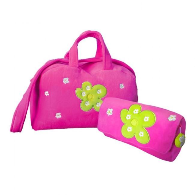 Wspaniała i barwna torba do ręki oraz na ramię wraz z saszetką z kolekcji Nastolatka. Torba oraz saszetka ozdobione są haftowanymi kwiatuszkami oraz uroczym zielonym kwiatkiem na środku. Komplet zapinany u góry na suwak zakończony pluszowym kwiatuszkiem. Wspaniały zestaw na wyjazdy oraz podróże.
