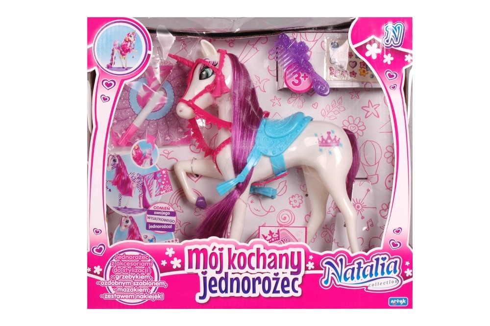 Śliczny koń dla dziewczynek, które lubią rysować i zdobić. Jednorożec ma w zestawie szablon i akcesoria, do indywidualnej stylizacji. Każda dziewczynka będzie zachwycona taką kreatywną zabawką!