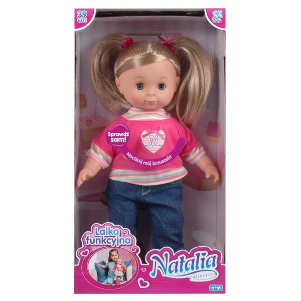 Aby usłyszeć jak pięknie mówi, wystarczy nacisnąć na jej brzuszek. Lalka posiada przepiękne, bujne włosy, z których można układać wiele niezwykłych fryzur! Natalia to wyjątkowa lalka, która szybko zostanie ulubioną towarzyszką zabaw najmłodszych dziewczynek!