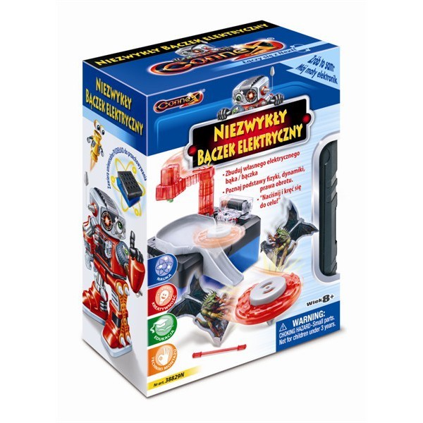 Zestaw dla małych konstruktorów, za pomocą, którego można zbudować własnego elektrycznego bączka. Dzieci poznają podstawy fizyki, dynamiki oraz prawa obrotu. Zestaw zawiera uniwersalne pudełko do przechowywania.