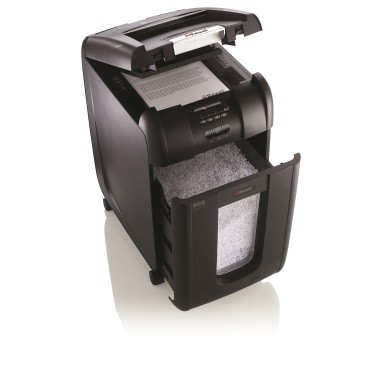 Dzięki automatycznemu podajnikowi niszczarki Auto+ 300M możesz włożyć nawet 300 kartek A4 jednorazowo, a urządzenie sprawnie i cicho je zniszczy. Ta zaawansowana niszczarka dla średnich biur posiada samooczyszczające się ostrza i pojemnik na ścinki o pojemności 40 litrów mieszczący 500 pociętych kartek A4. Niszczarka tnie dokumenty na ścinki mikro 2x15 mm, tnąc je do standardu bezpieczeństwa P-5 wraz z zszywkami i spinaczami biurowymi. Niszczy też płyty CD i karty płatnicze. Model posiada 4-cyfrową blokadę komory podajnika, zapewniającą bezpieczne niszczenie dokumentów bez konieczności nadzoru.