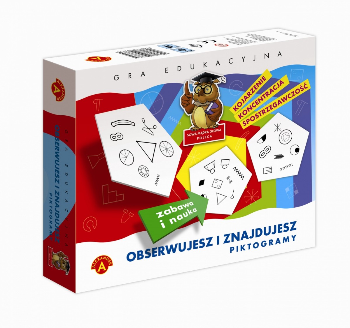 Proponujemy ciekawą grę zapewniającą dobrą zabawę, przy jednoczesnym kształtowaniu koncentracji, spostrzegawczości i uważności. Procesy te niezbędne są podczas pracy mózgu w każdym wieku. Na kartach znajduje się po 8 różnych jednokolorowych znaków i figur. Karty między sobą mają wspólny znak/figurę, którą należy znaleźć i wskazać palcem na karcie ze stosu kart. Celem gry jest odnalezienie wspólnego dla dwóch kart znaku. Przy każdorazowym starciu wygrywa ten gracz, który jako pierwszy wskaże wspólny dla dwóch kart znak. Gdy zdarzy się, jednoczesne wypowiedzenie słów, należy kartę przełożyć na koniec stosu kart.