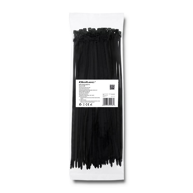 Opaski zaciskowe 4.8x300mm, nylon UV, 100szt., czarne