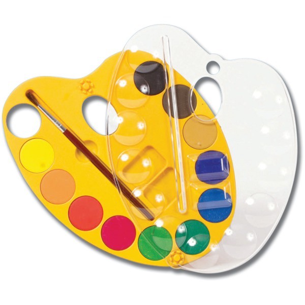Oto pędzelek i paleta z aż 12 farbami plakatowymi o intensywnych kolorach! Paleta posiada 2 wgłębienia przeznaczone do mieszania farb i jest wygodna w trzymaniu.