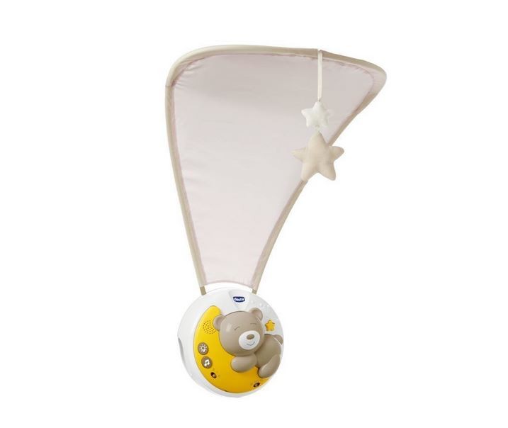 Niezwykła, bajkowa i bezpieczna zabawka dla noworodków i niemowląt. Montowany na ramie łóżeczka projektor, emituje światło i muzykę, a na wieńczącym zabawkę dużym baldachimie wyświetlają się urocze, kolorowe postaci, pomagając dziecku usnąć.