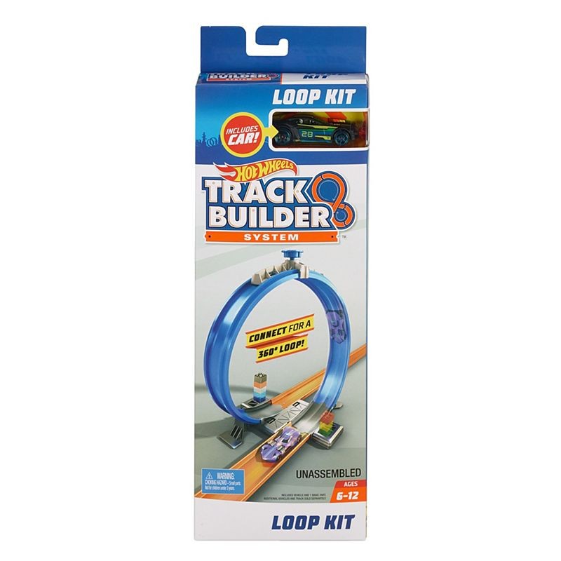 W skład asortymentu wchodzą trzy dodatkowe elementy: zakręt, kultowa pętla Hot Wheels i wyrzutnia.