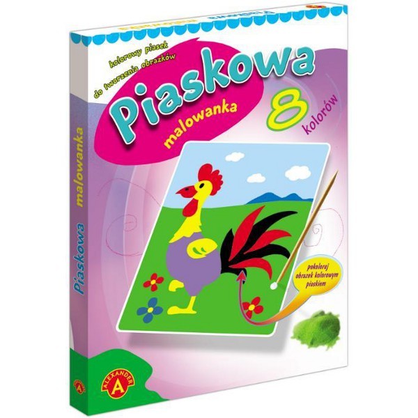 Artystyczna zabawa malowania piaskiem polega na odsłanianiu kolejno poszczególnych, naciętych elementów obrazka, tak by odkryć klejącą powierzchnię wybranego fragmentu. Każdy odsłonięty fragment posypuje się piaskiem w kolorze zgodnym ze wzorem obrazka zamieszczonym w instrukcji i na pudełku.