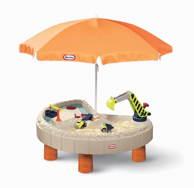 Ten wyjątkowy stół pozwala na zabawę z piaskiem i wodą. Większa część, przeznaczona na piaskownicę, wyposażona została w specjalną, łatwą w obsłudze koparkę, dzięki której załadujesz piasek na wywrotkę czy do wiaderka. Druga część posiada kanał wodny z wyspą, most łączący wyspę z placem budowy i dźwig. Ten niezwykły stół pozwoli małym budowniczym aktywnie i przyjemnie spędzić czas na świeżym powietrzu. W zestawie znajduje się parasol, który osłoni maluchy przed ostrym słońcem i dwa autka budowlane do wspaniałej zabawy.